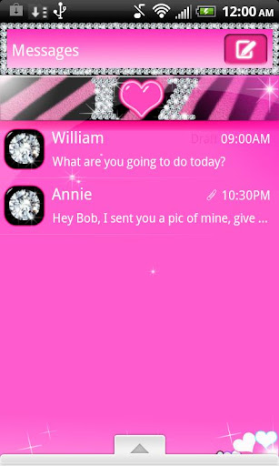 Please click on the theme picture and it'll direct you to the download page. DIAMOND PINK themes All for Free. Enjoy! DON'T forget I have lots more FREE themes in OCTOBER including many different colors for iphone inspired themes for GO SMS PRO. Just click on the Google Search bar up top of my page.